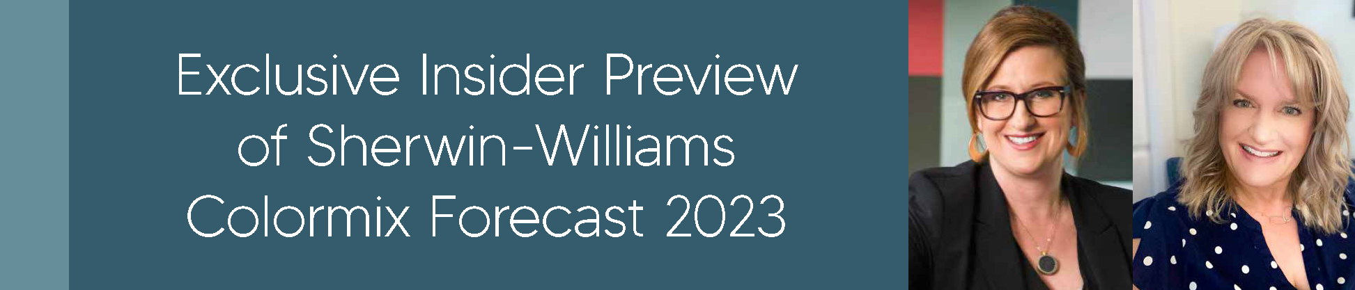 In this exclusive Insider Preview Event – we go behind the scenes with Sherwin-Williams color experts Sue Wadden and Laurie Clark to discuss the future drivers influencing color and design trends. We’ll discuss macro themes, global trends and color trend evolution and embark on a visual journey with stimulating imagery, design interpretations and research that supports the 2023 forecast.